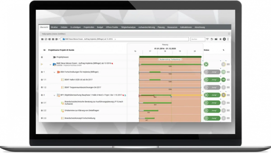 Wir setzen auf digitale Prozesse und die SoftwarelösungâŻprojectfacts der 5 Point AG. Mit dem Projektstrukturplan managen wir Arbeitspakete und Verantwortlichkeiten effizient und detailgenau. Wir strukturieren unsere Projekte flexibel mittels Phasen und Meilensteinen. Mit der KapazitĂ€tsplanung können wir Ressourcen je nach Auslastung einplanen und umverteilen. Die KapazitĂ€ten unserer Teammitglieder werden nach Erfordernis der Teilaufgabe und Qualifikation des Mitarbeiters den Arbeitspaketen zugeordnet.