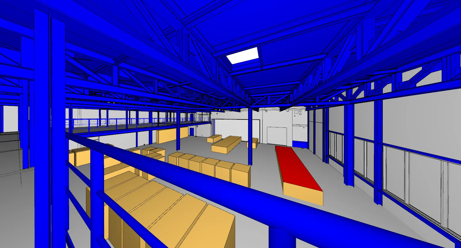Entgegen der ursprünglichen Brandschutzplanung sowie den Anforderungen an ein feuerbeständiges Tragwerk sollte die Trag- und Dachkonstruktion der Logistikbrücke, die die Hallen 70 und 72 verbindet, als nichtbrennbare Stahlkonstruktion ohne Feuerwiderstand ausgebildet werden. Zum Nachweis der Standsicherheit im Brandfall wurde eine Bauteiltemperaturuntersuchung durchgeführt. Die Untersuchung der maßgebenden Brandszenarien im Bereich der Logistikbrücke mit Methoden des Brandschutzingenieurwesens ergab, dass es zu keinen kritischen Bauteiltemperaturen des Tragwerkes im Brandfall kommt. Im Bereich der maximalen Energiefreisetzung, welche durch die Sprinkleranlage begrenzt wird, und der daraus resultierenden, maximalen adiabaten Oberflächentemperatur konnte eine Unterschreitung der kritischen Stahltemperatur von 500 °C an den statisch relevanten Punkten am Deckenträger über der Zwischenebene sowie im Wandbereich der Reifenkommissionierungsfläche nachgewiesen werden.