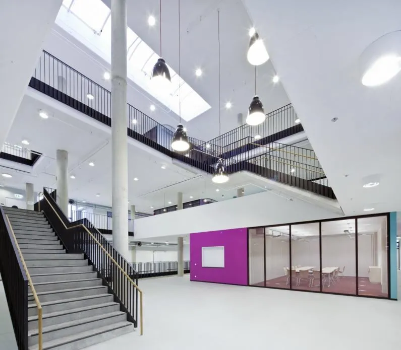 Aufgrund der anspruchsvollen Architektur mit großflächigen Deckenöffnungen wurden ingenieurmäßige Nachweise zur Sicherstellung der Selbstrettung erforderlich. Auf Anforderung der Genehmigungsbehörden mussten die Ergebnisse in einem Rauchversuch verifiziert werden.